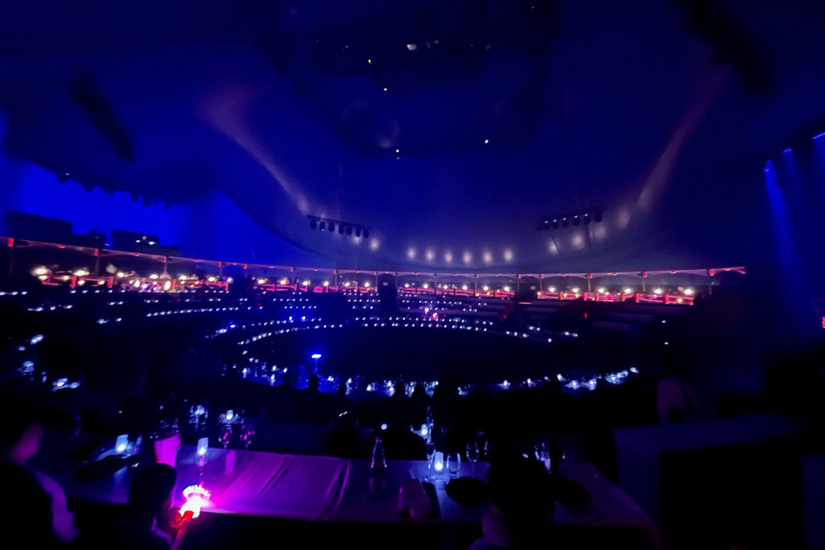 New bleacher 2 in 1 Here is the new bleacher for tent Ø38m for Cirque Arlette Gruss. A very special realization because the bleacher can be assembled "in the classic way" and transformed for a Dinner Show, setting the tables.